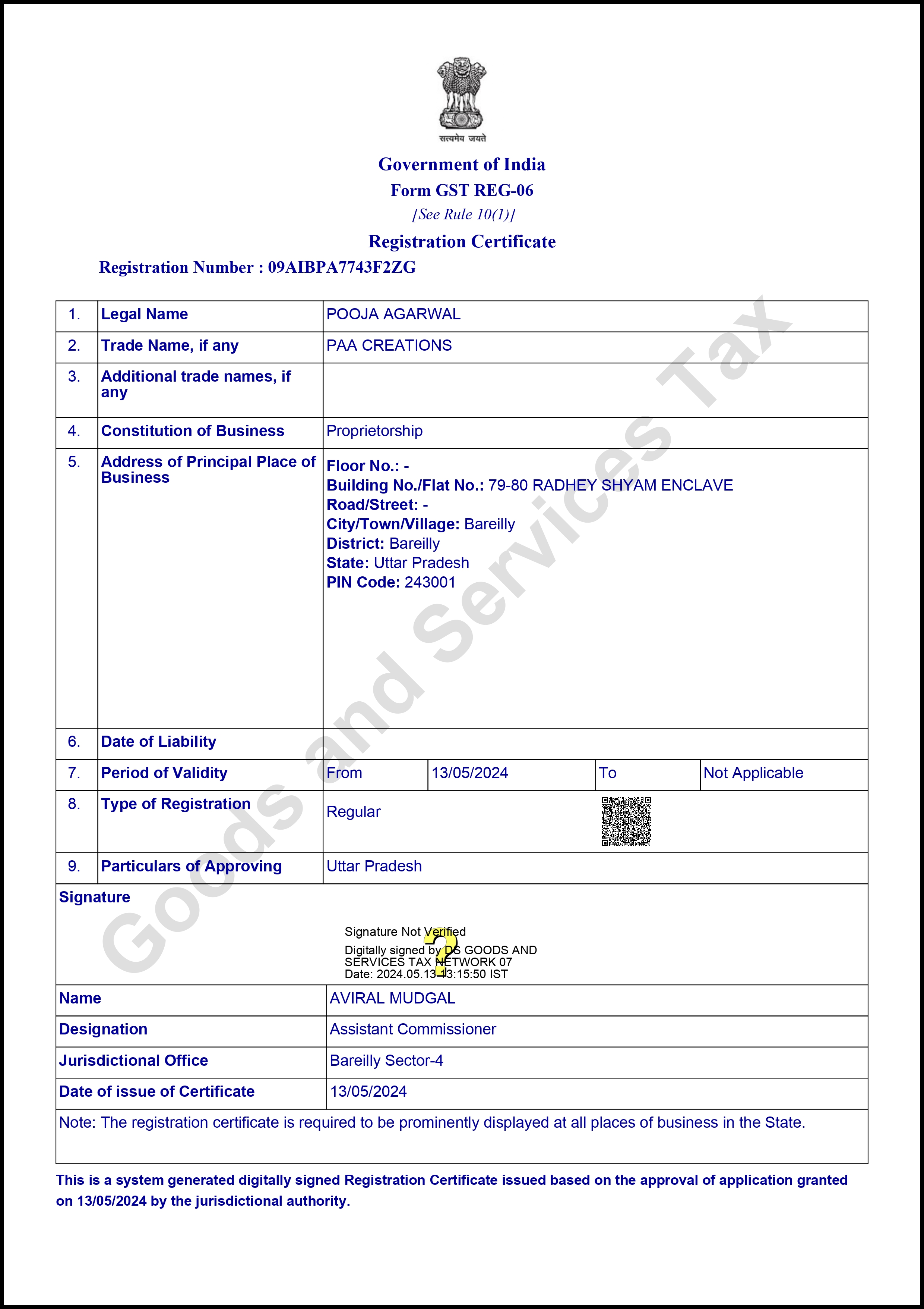 This GST Certificate confirms our compliance with tax regulations, assuring you that we operate with full transparency and integrity.