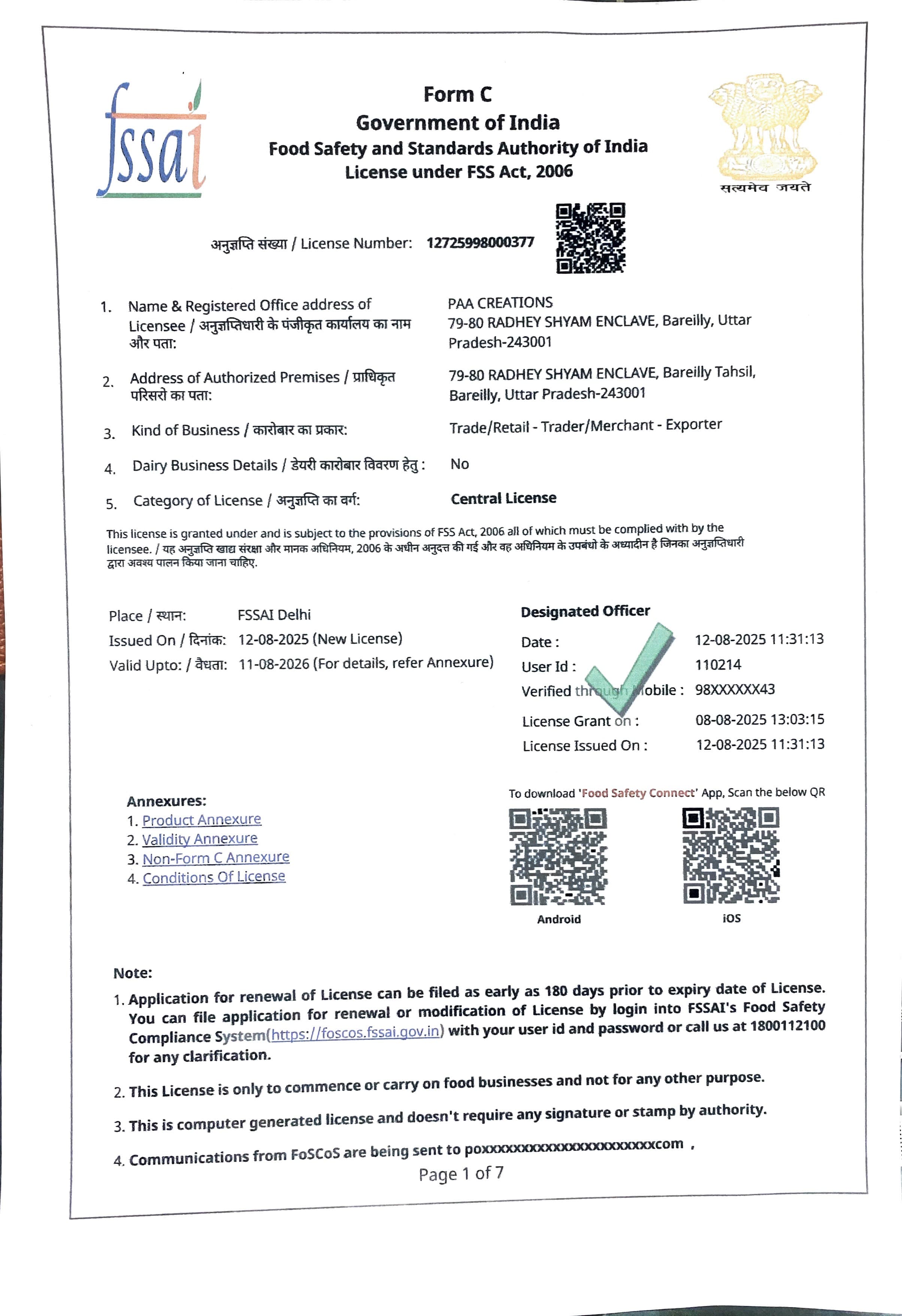 This MSME Registration certificate, issued by the government, confirms your business is genuine, ensuring you can trust our legitimacy and reliability.